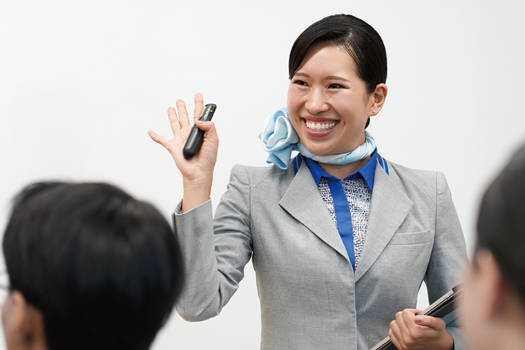 航空業界の現場で求められるのは、お客様一人ひとりに向き合ったホスピタリティ。本校のカリキュラムでは、どんな状況でも自ら考え積極的に行動し、課題解決できる力を多方面から強化し、将来幅広く活躍できる人へと成長することができます。