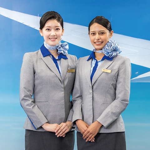 客室乗務員(CA)は、機内で乗客の安全を守る“保安要員”としての役目と、乗客が快適に航空機を利用できるサービスを提供する“接客要員”としての役目を併せ持つ。採用倍率の高い人気職。