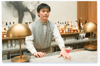 JWマリオット・ホテル奈良のロビーラウンジで、カクテルやドリンクを作りながら、お客様に最高の時間を届けています。専門学校で学んだ“お客様の立場で考える”という基本は、現場で本当に役立っています。海外のお客様とのコミュニケーションに苦戦した時も、ジェスチャーや簡単な英語で心を通わせ、最後には『日本で一番心地よかった』と言っていただけたことは忘れられません。自分が作った一杯で笑顔が生まれる瞬間が、この仕事のやりがいです。これからも目の前のことに全力で取り組み、さらに成長していきたいと思っています。